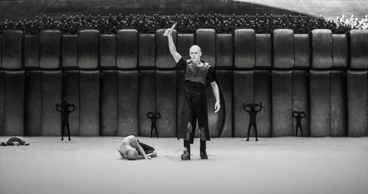 I loved absolutely every damn thing about the Harkonnen side of things. The black and white hell of Giedi Prime, simmering under its black sun, is everything my heart wanted from the source material. Stellan Skarsgård continues to prove he’s a master of the craft as the Baron, looking like something out of Jabba the Hut’s nightmares. Then there’s Feyd-Rautha (Austin Butler; Elvis), who steals every scene that he’s in with serious villainous intensity. I mean, the dude chews up scenes like I chew up a three-meat BBQ plate from Terry Black’s when I’m stoned out of my mind. It’s a thing of beauty to watch. His birthday “celebration” is worth the price of admission alone.